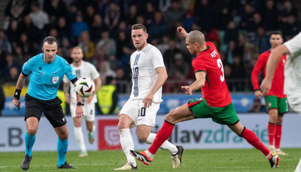 19' Jaka Bijol in Otavio sta se borila v kazenskem prostoru Slovenije, Portugalec se je znašel na tleh, a Irfan Peljto ni podlegel niti pritisku Cristiana Ronalda.