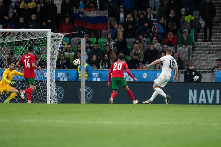 77' Slovencem se je po protinapadu Timija Maxa Elšnika in Petra Stojanovića ponudila nova priložnost, akcijo je zaključil Žan Celar, Diogo Costa pa je bil na pravem mestu.