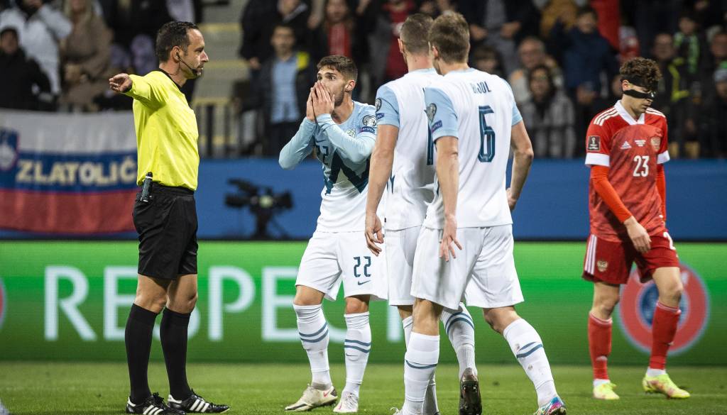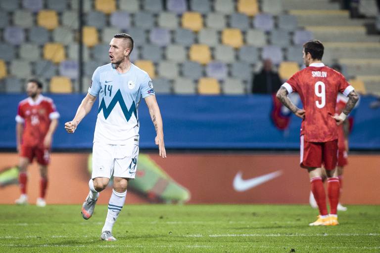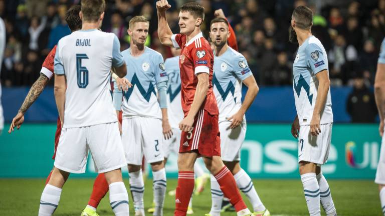 Slovenska nogometna reprezentanca je v Mariboru na osmi tekmi kvalifikacij za svetovno prvenstvo 2022 izgubila proti Rusiji z 1:2 (1:2).