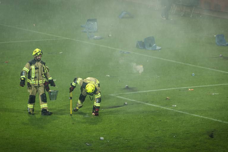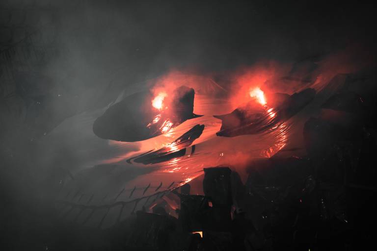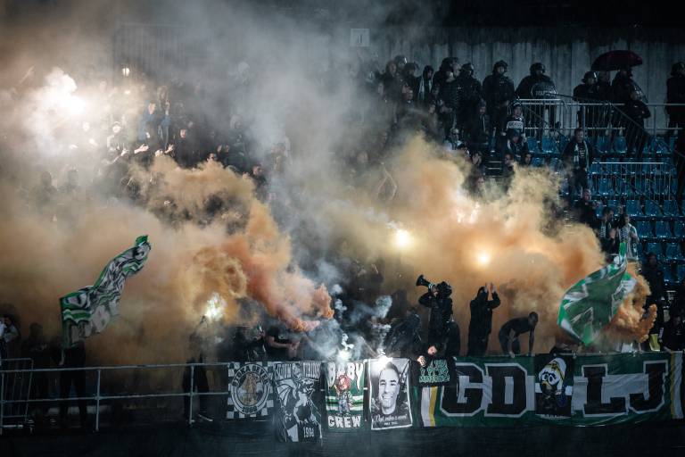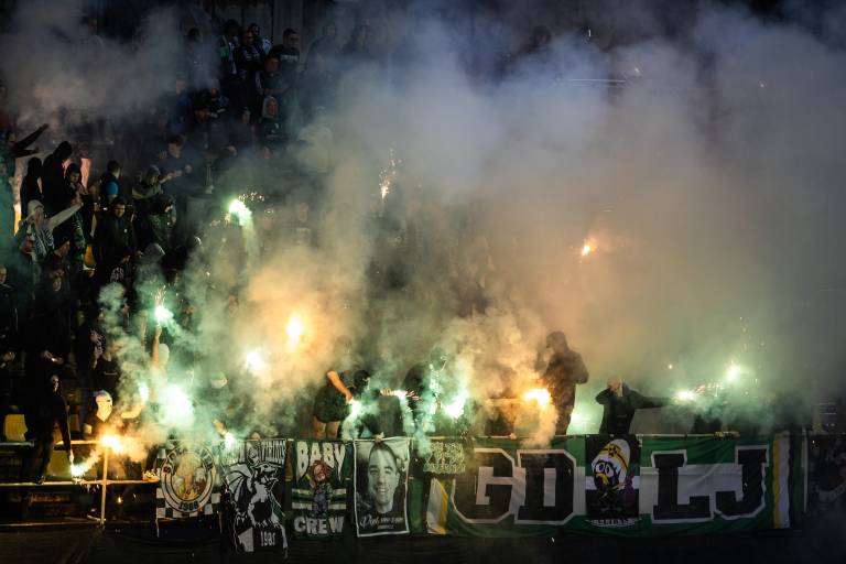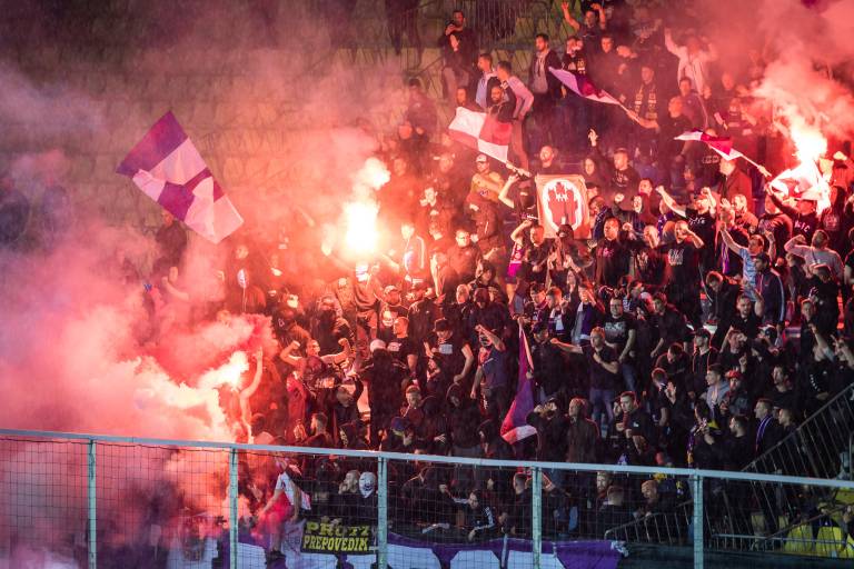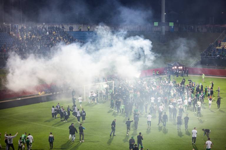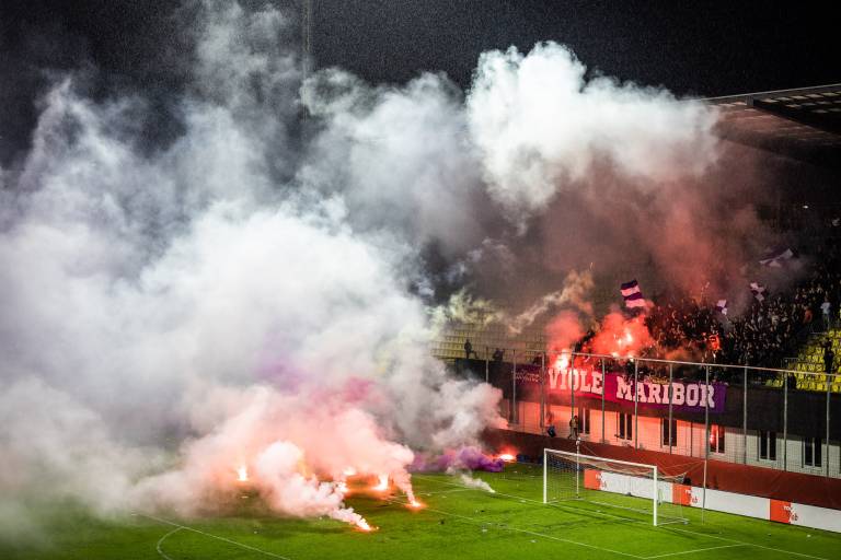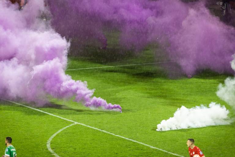 62' PREKINITEV! Zdaj so za prekinitev poskrbele še Viole, na igrišču je končalo nekaj dimnih bakel.