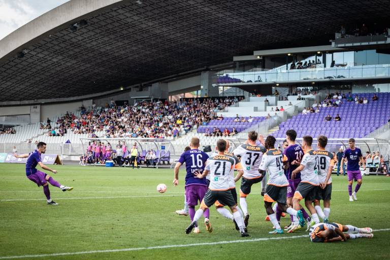 Poraz vijoličastih na prvi tekmi drugega kroga kvalifikacij UEFA Evropske konferenčne lige je v zadnji sekundi preprečil Arnel Jakupović, ki je trikrat zadel tudi v prvem krogu državnega prvenstva. Maribor je v Domžalah s 4:0 premagal Radomlje.