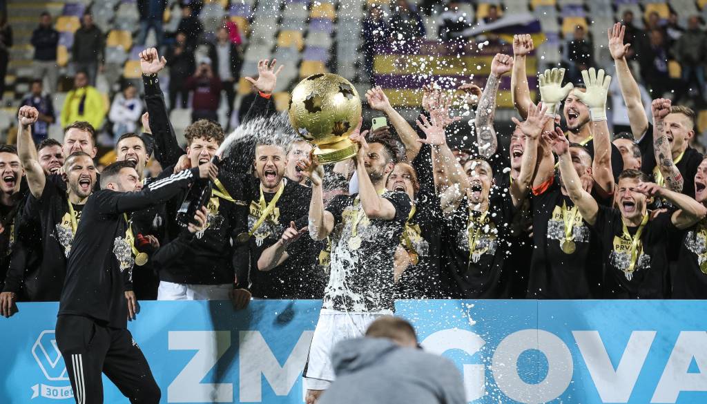 Prvak je okronan! Nogometašem Mure je uspel zgodovinski podvig. Prvič v zgodovini so osvojili naslov državnega prvaka. V napeti končnici prvenstva so v Ljudskem vrtu premagali Maribor.