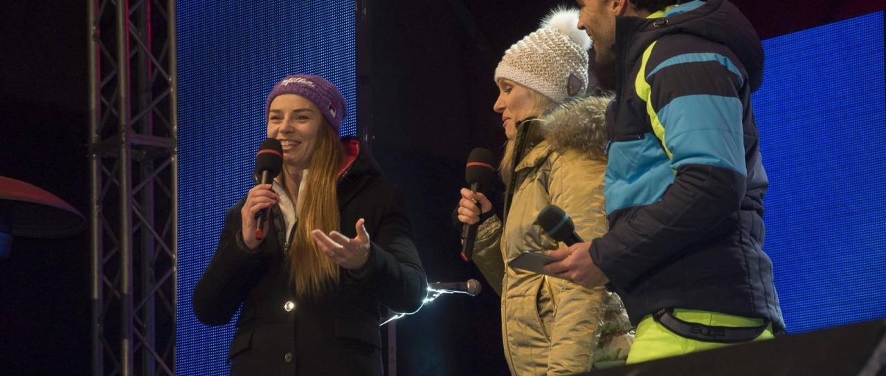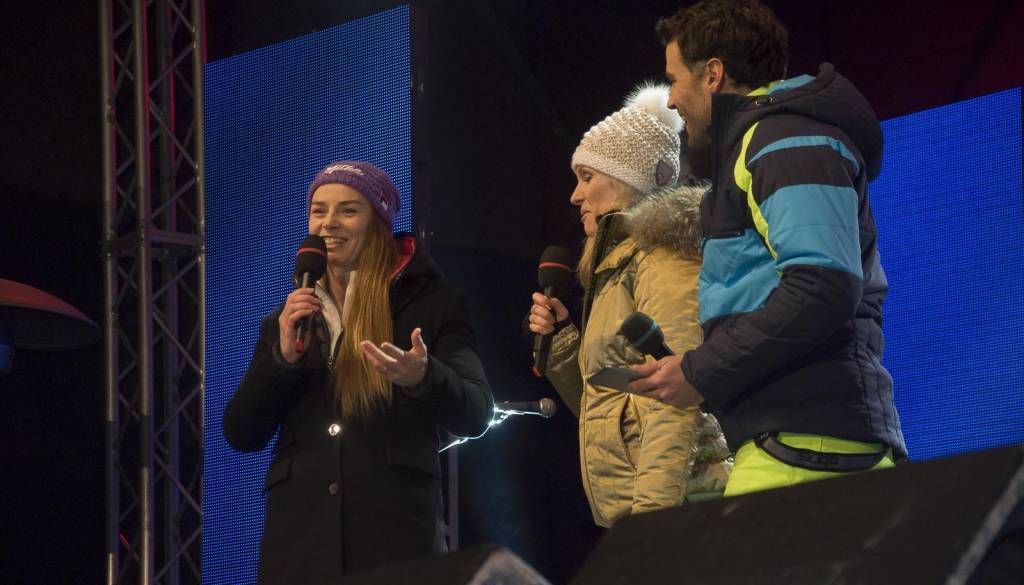 Na Trgu Leona Štuklja se je danes ponovno zbrala nestrpna množica, saj so zaradi Tininega smučarskega slovesa nocoj pripravili prireditev Hvala, Tina.
