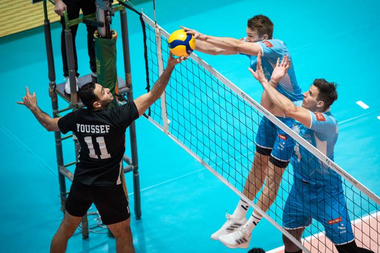 Slovenci so nato stvari postavili na svoje mesto. Egipt je bil po izidu 8:8 vseskozi v zaostanku, a je domači zasedbi dihal za ovratnik. Slovenci so tako vodili s 17:16, po poškodbi gležnja Dejana Vinčića pa so na krilih domačinov Roka Možiča in Alena Pajenka ušli na 24:19 in izenačili v nizih.