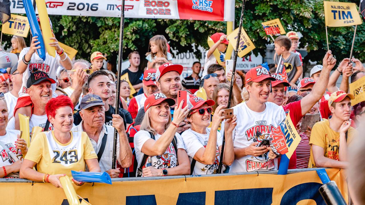 V Mariboru so danes navijači bučno sprejeli novega svetovnega prvaka razreda MXGP Tima Gajserja.