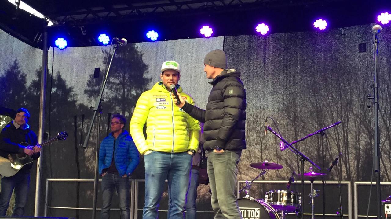Kline je zbranim navijačem dejal, da sanja tudi zmage v Wengnu, Kitzbuehlu ... Najmlajšim pa je položil na srce, naj trdo delajo za uspehe in naj na obupajo.