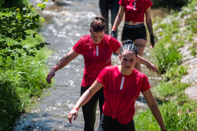 Med tekom so se pomerili v plezanju preko stene, hoji po gumah, plazenju pod bodečo žico in drugih nevarnih ovirah.
