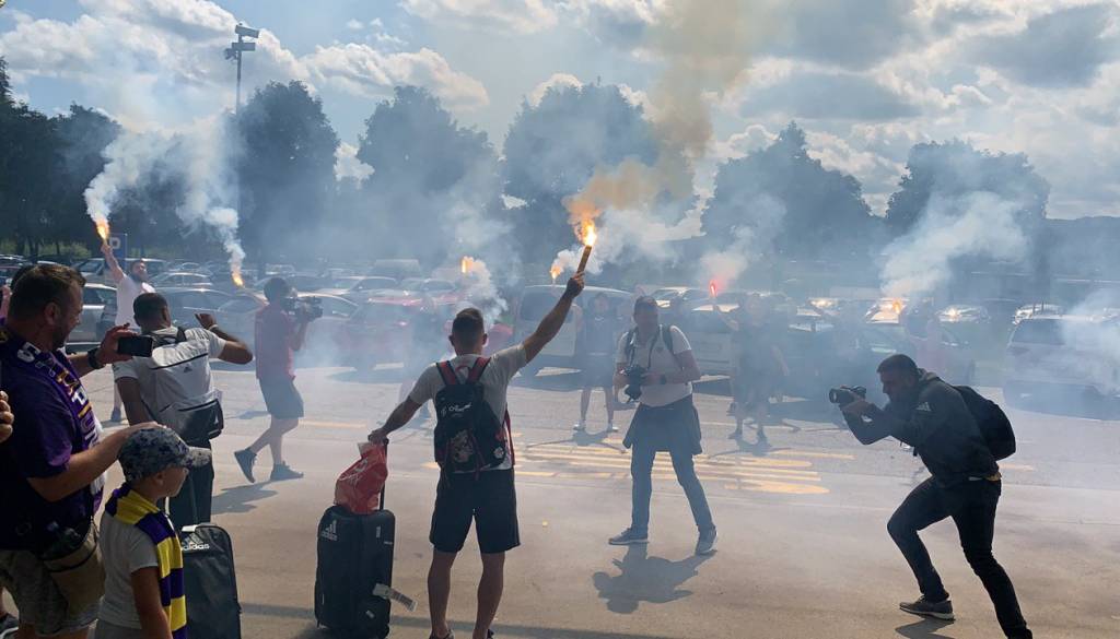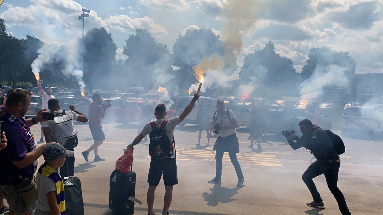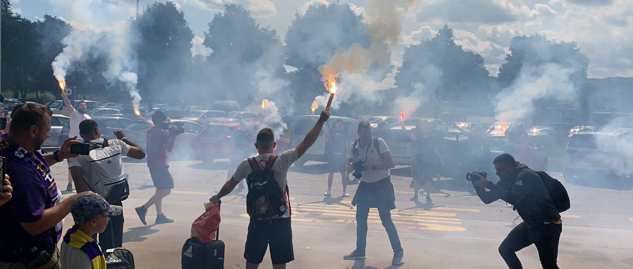 Na Letališču Edvarda Rusjana Maribor so mariborske nogometaše pričakali številni navijači v vijoličastem.