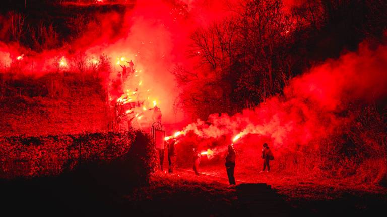 Bakle, pesmi in slogani so napolnili večer, ki ni bil le praznovanje jubileja, temveč tudi izraz zvestobe in identitete.