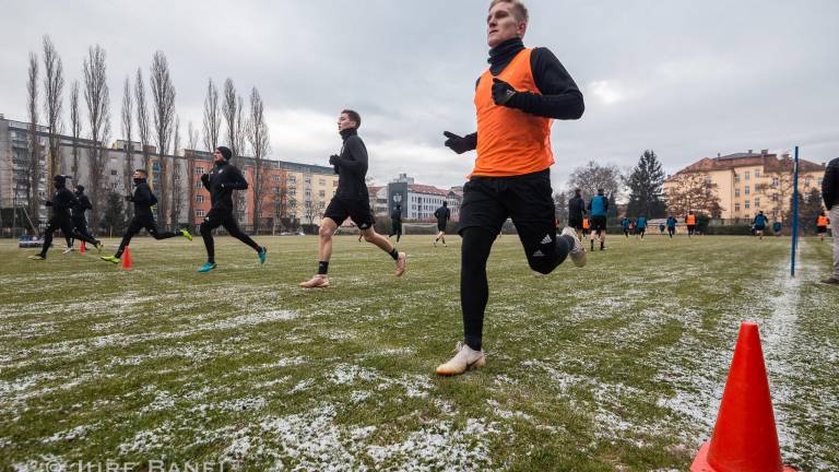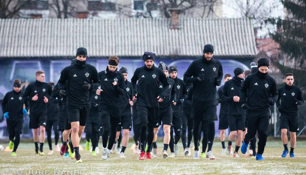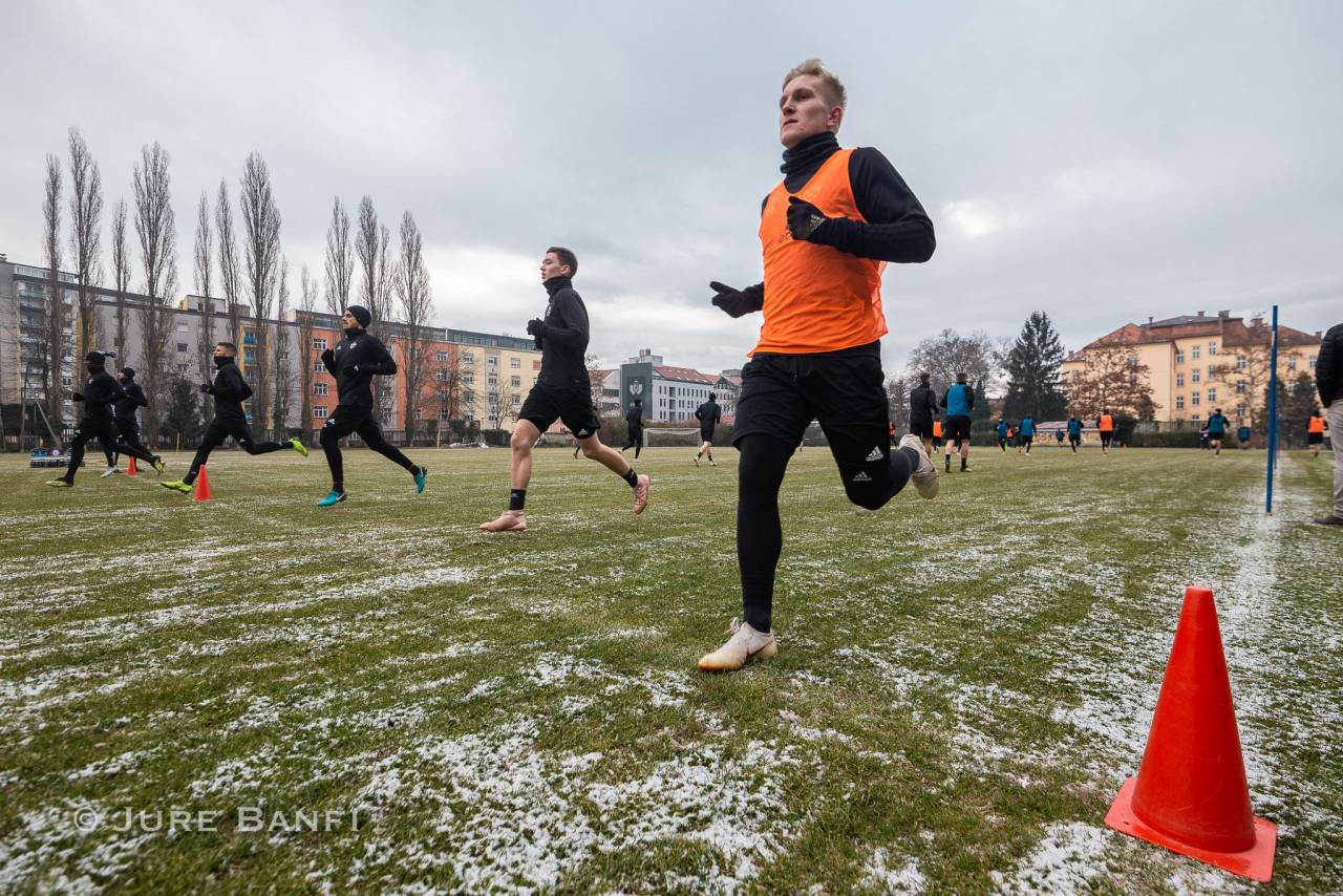 Vijoličasti so priprave pred spomladanskim delom sezone pričeli v telovadnici Ljudskega vrta. Po dobrih dvajsetih minutah ogrevanja so se podali na zelenico pomožnega igrišča, ki v zimskih razmerah ne ponuja najboljših pogojev za delo. Na uvodnem treningu sta v skladu z dogovorom manjkala Marcos Tavares in Saša Ivković, ki pa se bosta ekipi pridružila že jutri.