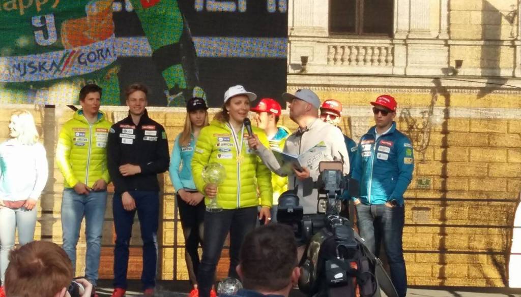 Takole veselo pa je bilo na Trgu Leona Štuklja, ko smo februarja po svetovnem prvenstvu v St. Moritzu pričakali Ilko: