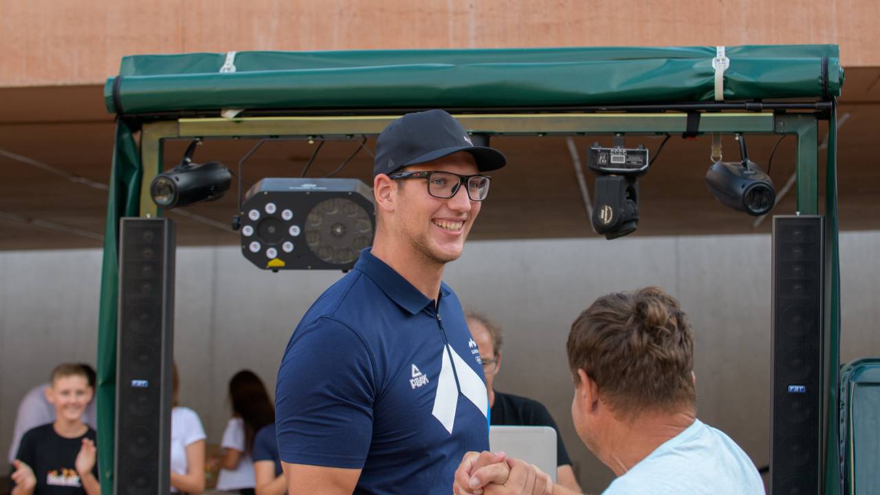 22-letnika so danes sprejeli na ptujski mestni tržnici, kjer so številni radovedneži šampionu lahko čestitali v živo.