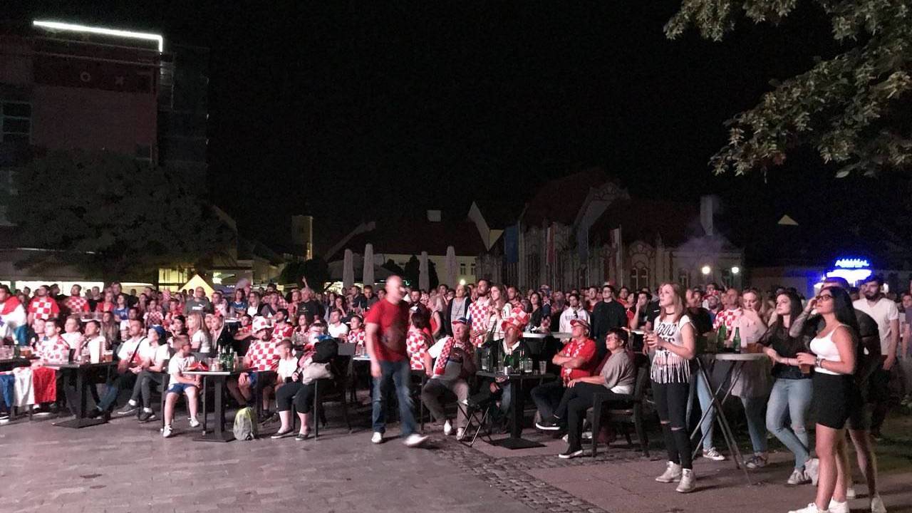 Navijači Hrvaške so srečanje pričakali nekoliko zadržani, po izenačujočem zadetku pa se je ozračje ogrelo in začeli so se navijaški napevi. Sledili so podaljški, zadetek Domagoja Vide in erupcija navdušenja v centru mesta.