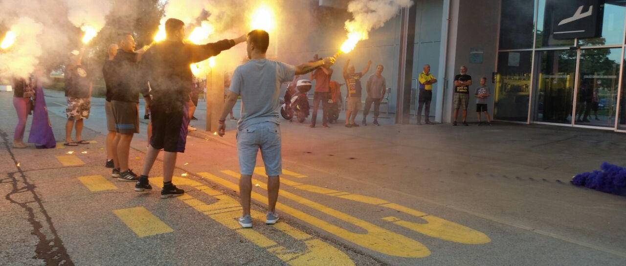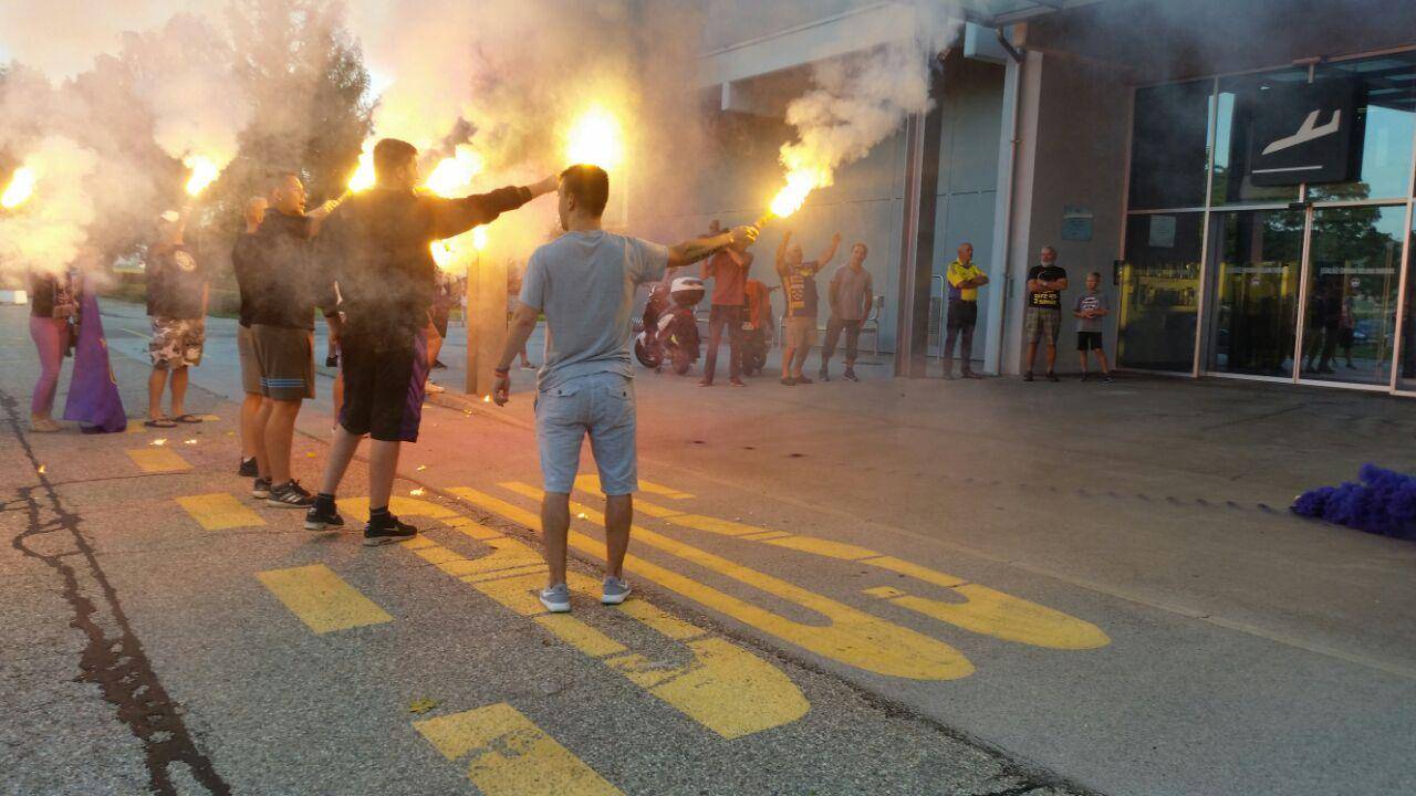 Aktualni slovenski prvaki so si z zmago nad islandskim Hafnarfjordurjem zagotovili napredovanje v play-off Lige prvakov in si v najslabšem primeru zagotovili nastop v Ligi Evropa. Mariborski nogometaši so tako z odlično popotnico zjutraj nekaj pred 6. uro pristali na Letališču Edvarda Rusjana Maribor, tam pa jih je pričakalo okoli 30 navijačev. Vidno utrujeni, a dobro razpoloženi se vračajo zadovoljni s prikazano igro, še posebej širok nasmešek pa je tudi tokrat krasil Tavaresa.