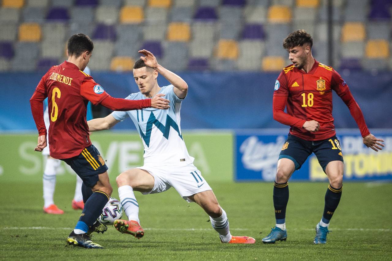 Španci so na prvi tekmi upravičili vlogo favorita. Slovenska mlada nogometna reprezentanca je obračun proti branilcem naslova izgubila z 0:3.