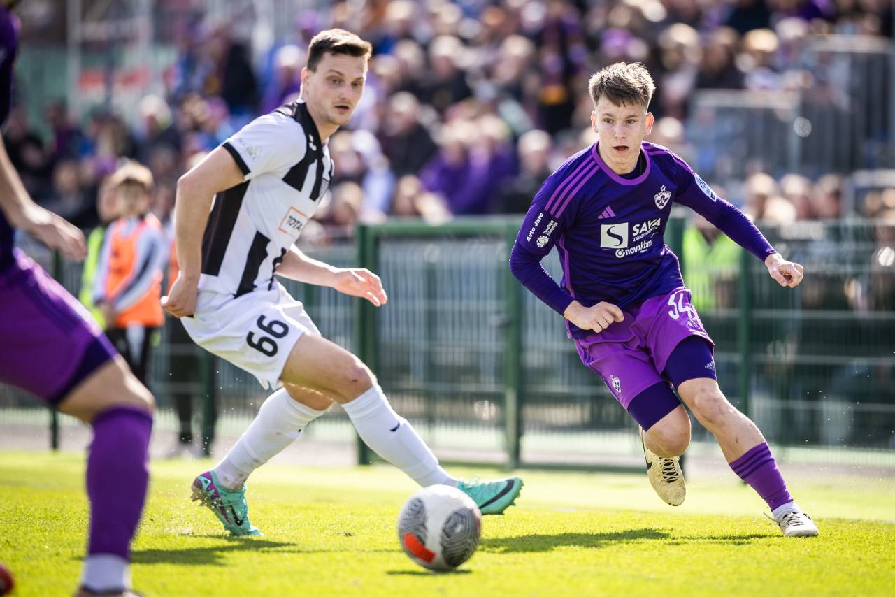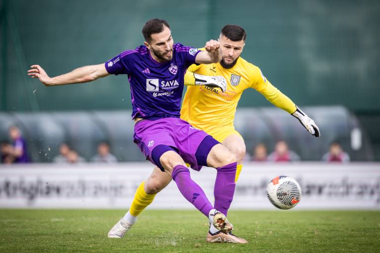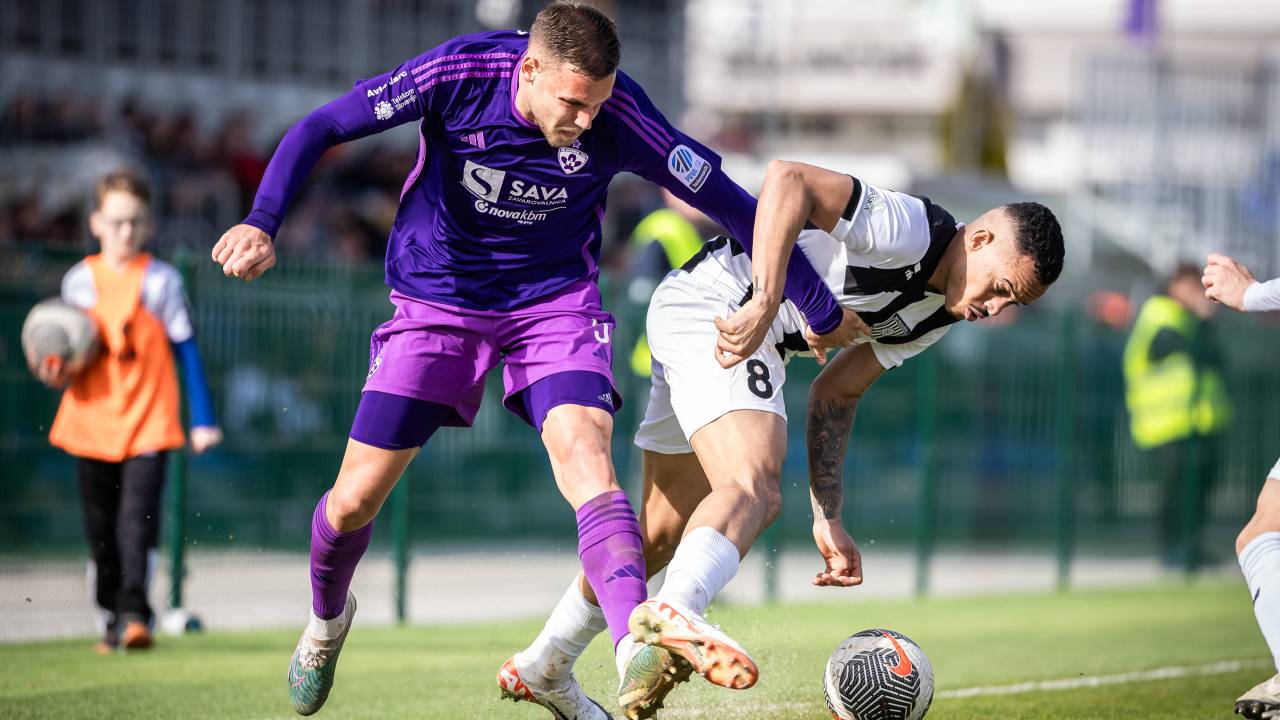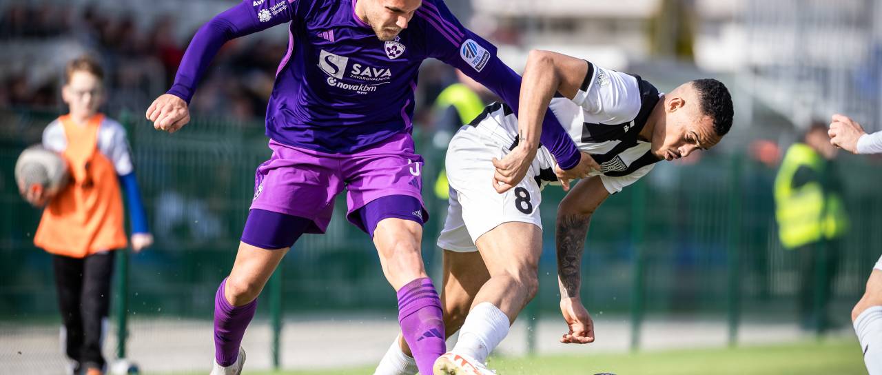 59' PREČNIK! Najlepša priložnost na tekmi, po podaji Svena Šoštariča Kariča je bil Maks Barišić hitrejši od Ajdina Mulalića, a je nato nastreljal zgolj prečnik, udarec Hilala Soudanija pa je končal v slatinskem bloku.