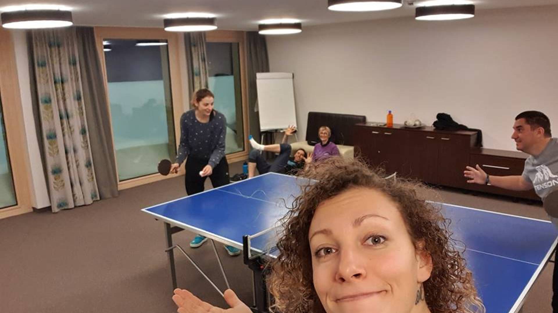 Odpoved tekem je sicer pokvarila načrte Ilki Štuhec, a ta z ekipo ostaja na avstrijskem smučišču. Kljub pokvarjenim načrtom pa se ne da motiti, priložnost so izkoristili kar za 'ping pong' turnir.