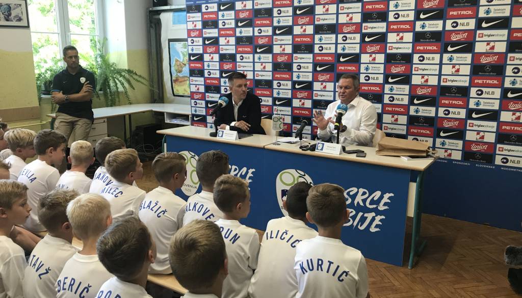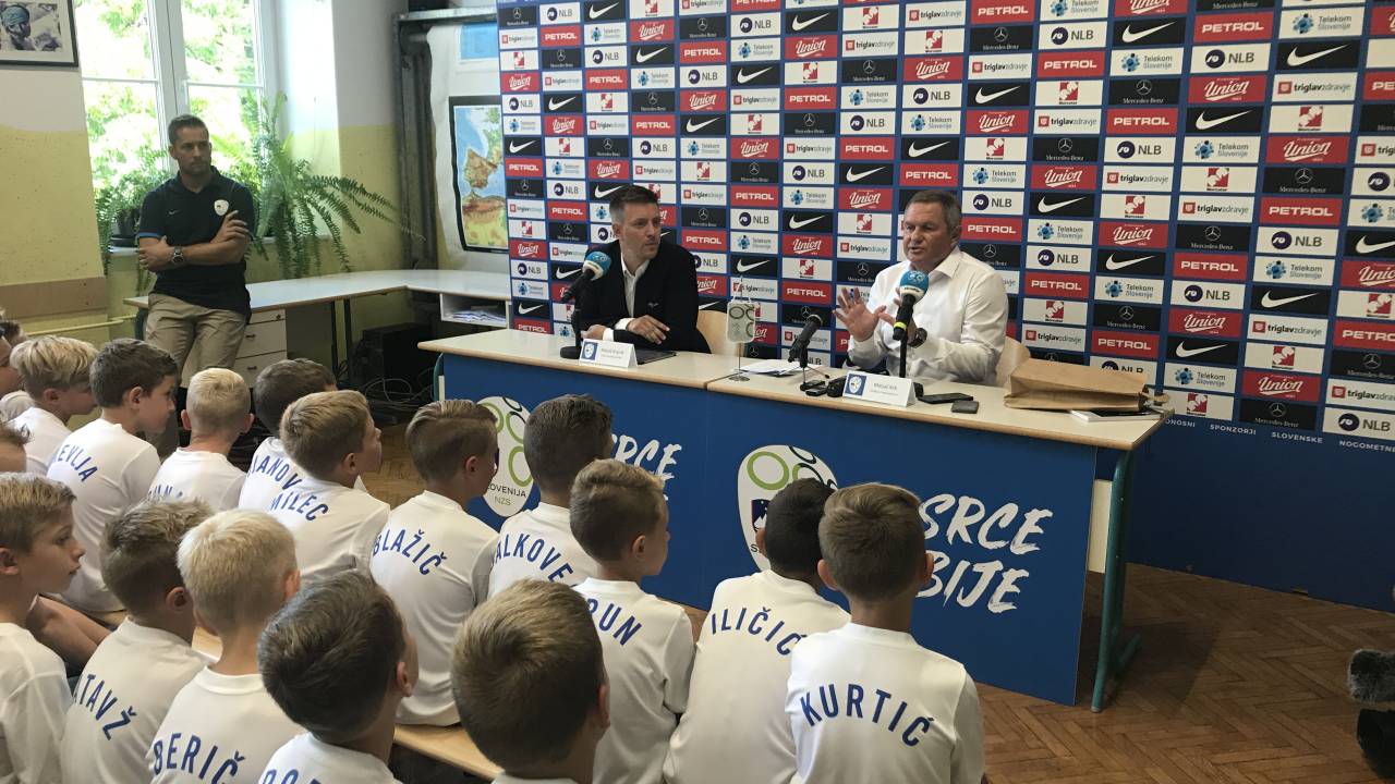 Selektor slovenske nogometne reprezentance Matjaž Kek je v mariborski osnovni šoli OŠ bratov Polančičev predstavil spisek reprezentantov za tekmi s Poljsko in Izraelom.