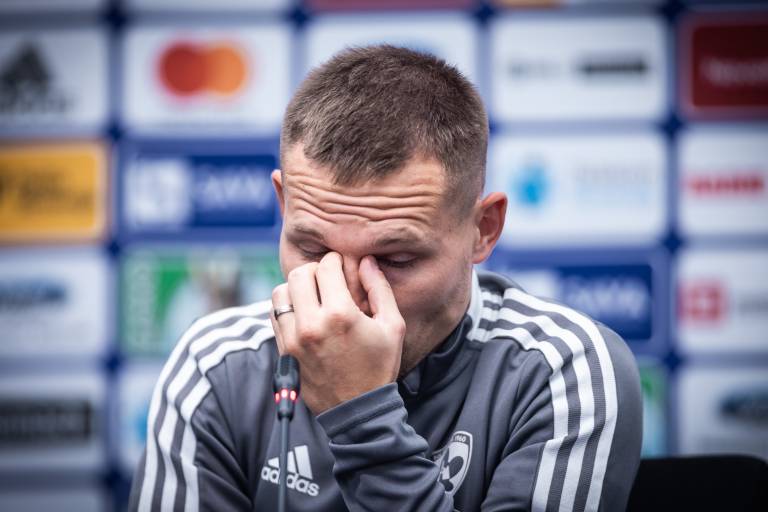 Povsem poklapan je pred zbrano sedmo silo sedel kapetan Martin Milec, ki se po poletni poškodbi postopoma vrača na nogometna igrišča.