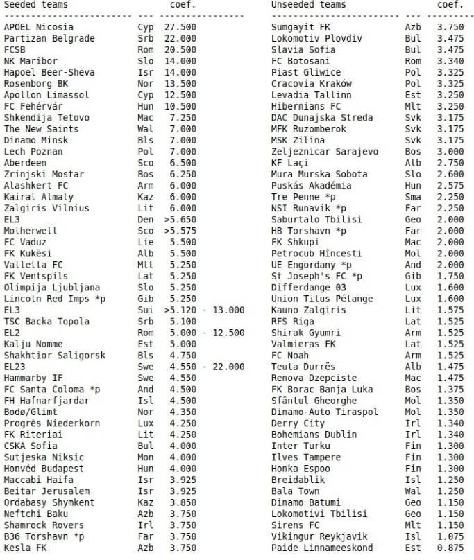 V desni razpredelnici bi tako lahko našli nasprotnika Maribora v kvalifikacijah, in kot vidimo, gre za relativno neznane klube iz lig, ki rangirajo nižje kot slovenska. Med bolj znanimi velja morda izpostaviti Slavijo Sofijo in sarajevski Željezničar.