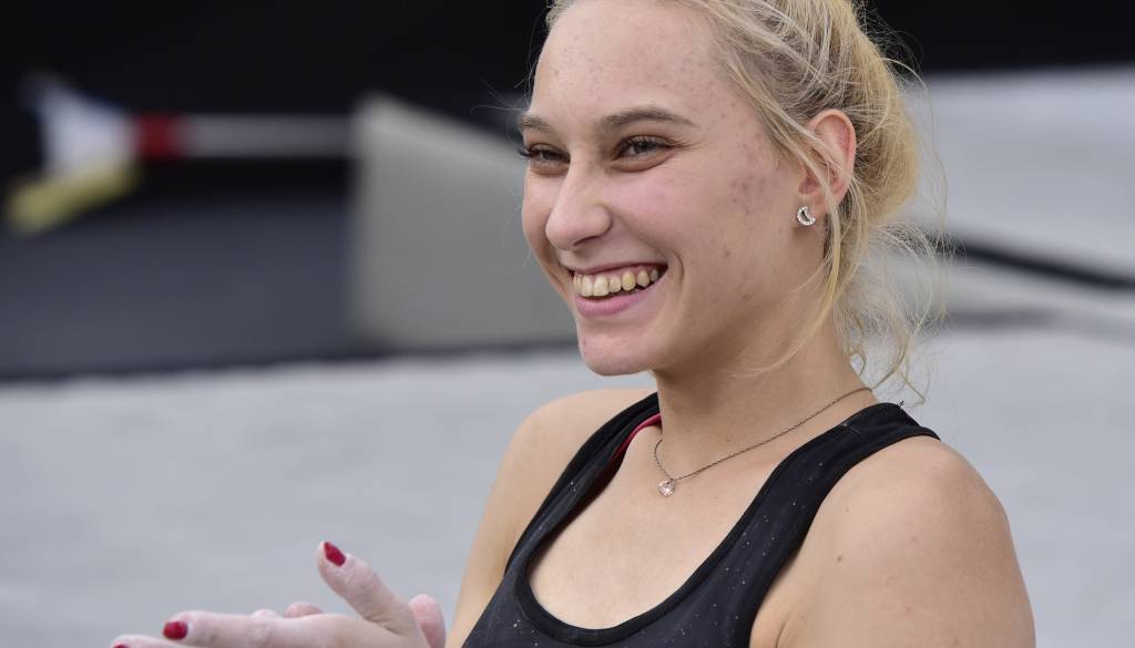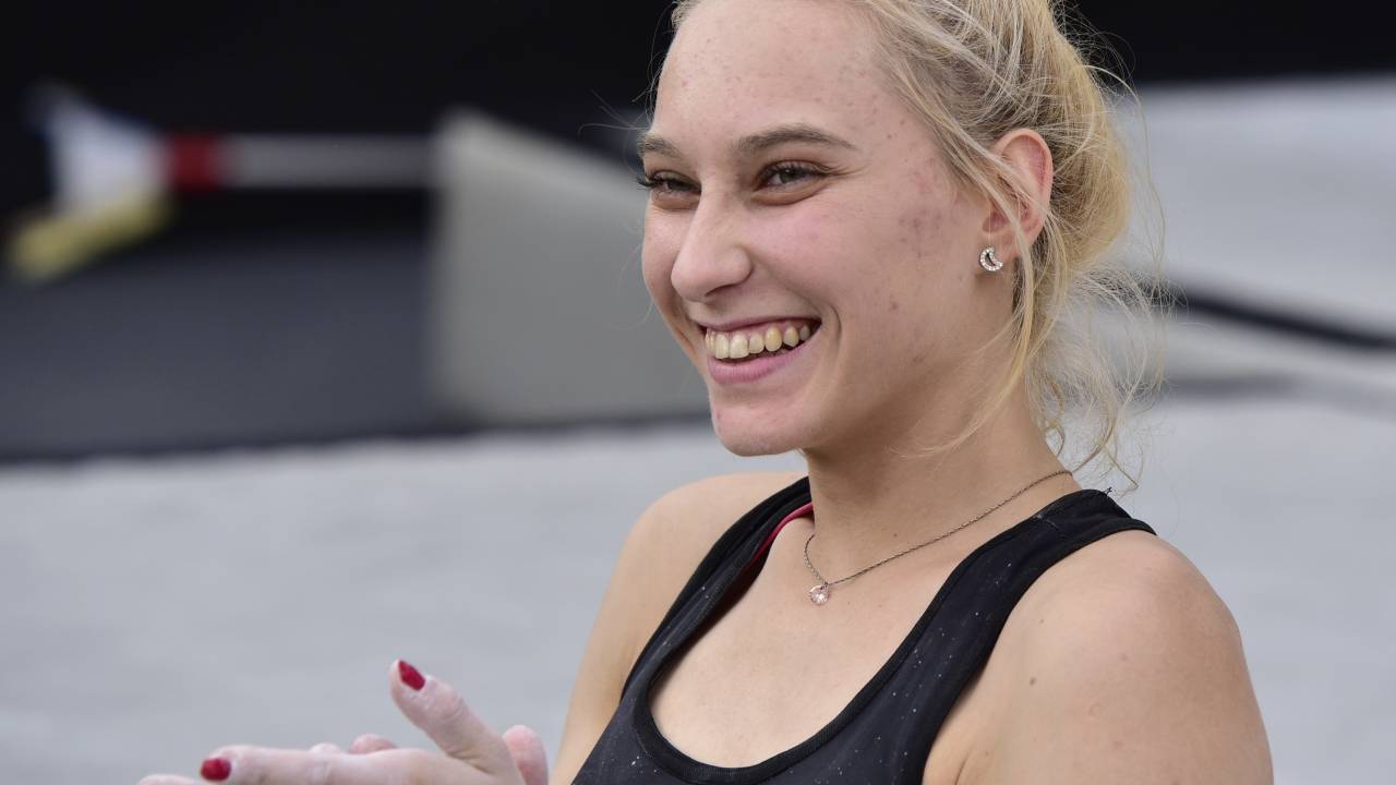 Za zadnji balvan je potrebovala več poskusov, a na koncu le splezala povsem do vrha ter je edina med 20 tekmovalkami zmogla vse štiri balvane.