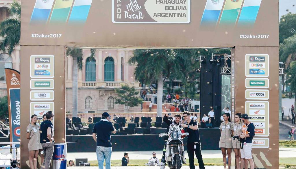 V Paragvaju, v mestu Asuncion je bil le štart, kmalu za tem pa so udeleženci že prispeli v Argentino. Prva etapa je bila dolga 39 kilometrov, med motoristi je z njo najhitreje opravil Francoz Xavier de Soultrait. Edini slovenski predstavnik Simon Marčič, ki tekmuje brez asistence, je etapo končal v zlati sredini. Zasedel je 77. mesto in za zmagovalcem zaostal sedem minut in 40 sekund.