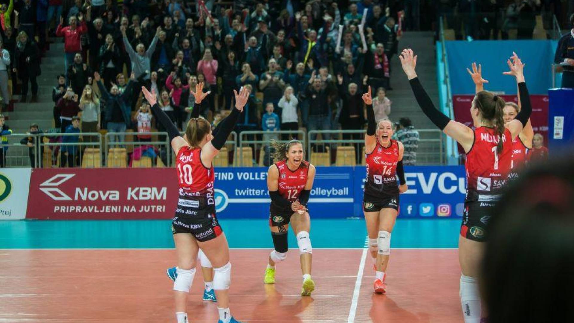 Prvi niz so mariborske odbojkarice zanesljivo dobile, v drugem pa je bila igra izenačena še v 19. točki. Z dobrimi servisi Anite Sobočan so dosegle štiri točke in zmagale še v drugem nizu. V tretjem nizu je bilo tako že jasno, kdo bo napredoval, zato so priložnost za igranje dobile igralke, ki so v preteklih tekmah igrale manj.