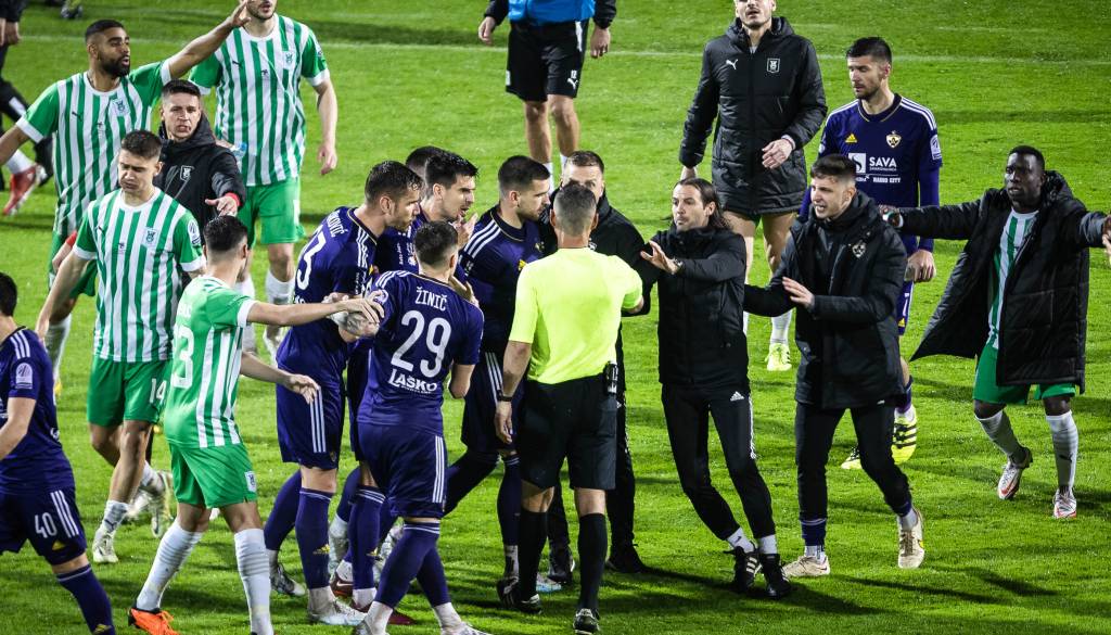 Če je bilo v taboru Olimpije veselo, pa se Mariborčani - ob koncu rednega dela tekme so imeli priložnost za zmago, a jo je Marko Tolić zapravil s »panenko« - niso mogli sprijazniti z odločitvijo delivca pravice iz Odrancev. Mertik je za nameček pokazal še malo morje kartonov.