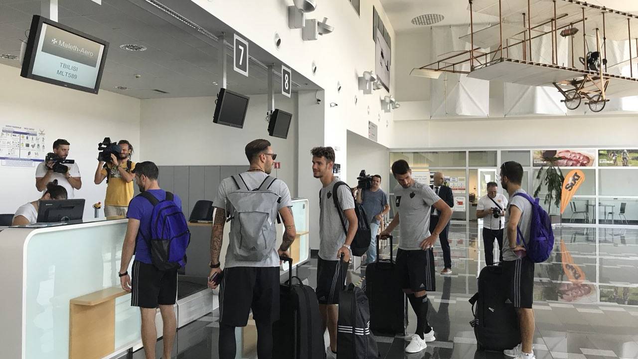 Mariborski nogometaši so se danes zjutraj odpravili v Tbilisi na prvo tekmo 2. kroga kvalifikacij za ligo Evropa. Tik pred odhodom smo jih ujeli na mariborskem letališču.