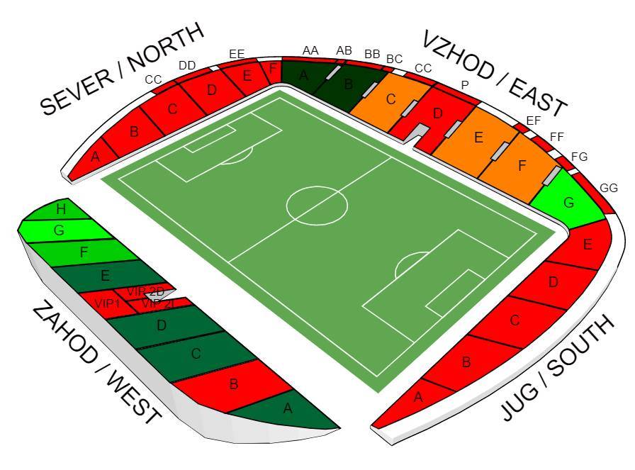 Tako je na vzhodni tribuni na voljo še okrog 700 vstopnic, čez 1600 praznih sedežev pa na morebitne kupce čaka na zahodni tribuni, in sicer v sektorjih H, G, F in E v prav takšnem vrstnem redu.