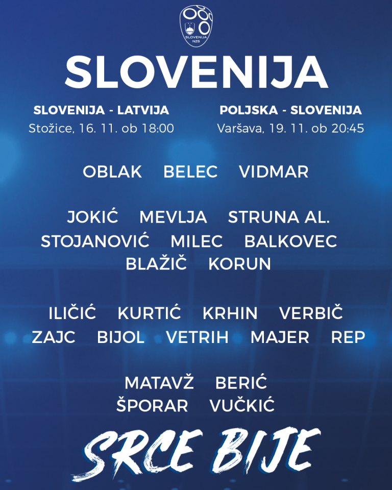 Reprezentanca se bo zbrala v ponedeljek v Kopru, kjer bo tudi opravila priprave. Tekma z Latvijo bo v soboto, 16. novembra, v Stožicah, s Poljsko pa v torek, 19. novembra, v Varšavi.