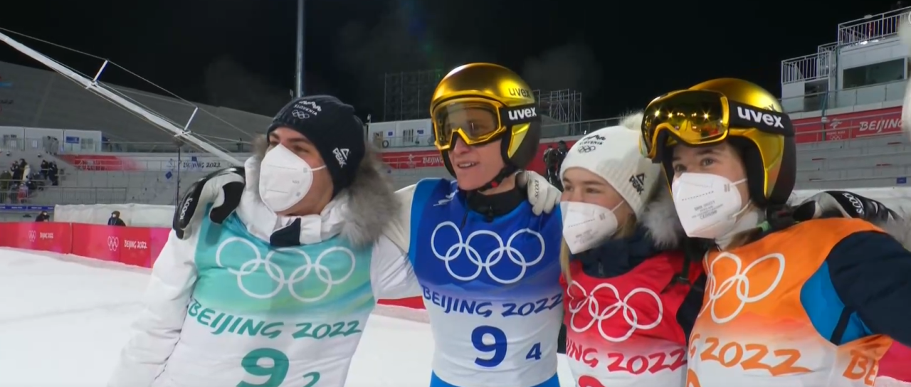 Sedaj so skakalci združili moči in si na tekmi mešanih ekip priskakali zlato medaljo v postavi Nika Križnar, Timi Zajc, Urša Bogataj in Peter Prevc.
