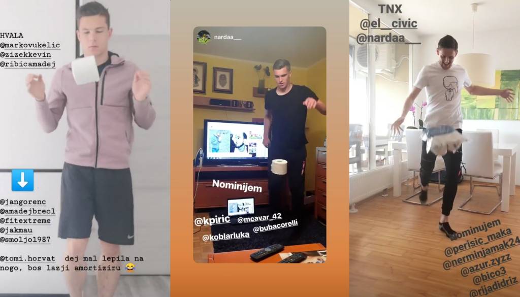 Z izzivom so se v preteklih dneh srečevali tudi nogometaši iz Prve lige Telekom Slovenije, med drugim si lahko na Instagramu pogledate, kako dobro z rolico toaletnega papirja žonglirata nogometaša nogometnega kluba Maribor Kenan Pirić, Nardin Mulahusejnović, Martin Milec in Marcos Tavares. Pridružili so se jima tudi nogometaši Matko Obradović, Andrija Filipović, Jon Šporn in mnogi drugi.
