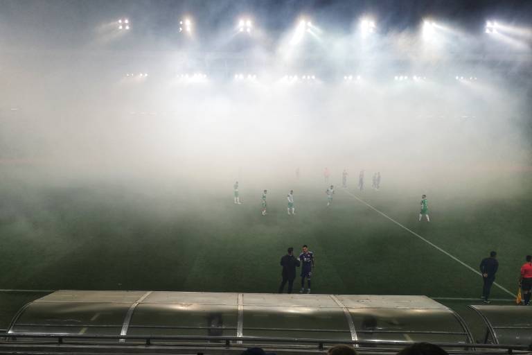 62' PREKINITEV! Po nekaj sekundah igre je derbi prekinjen še tretjič, znova zaradi metanja bakel z domače navijaške tribune.