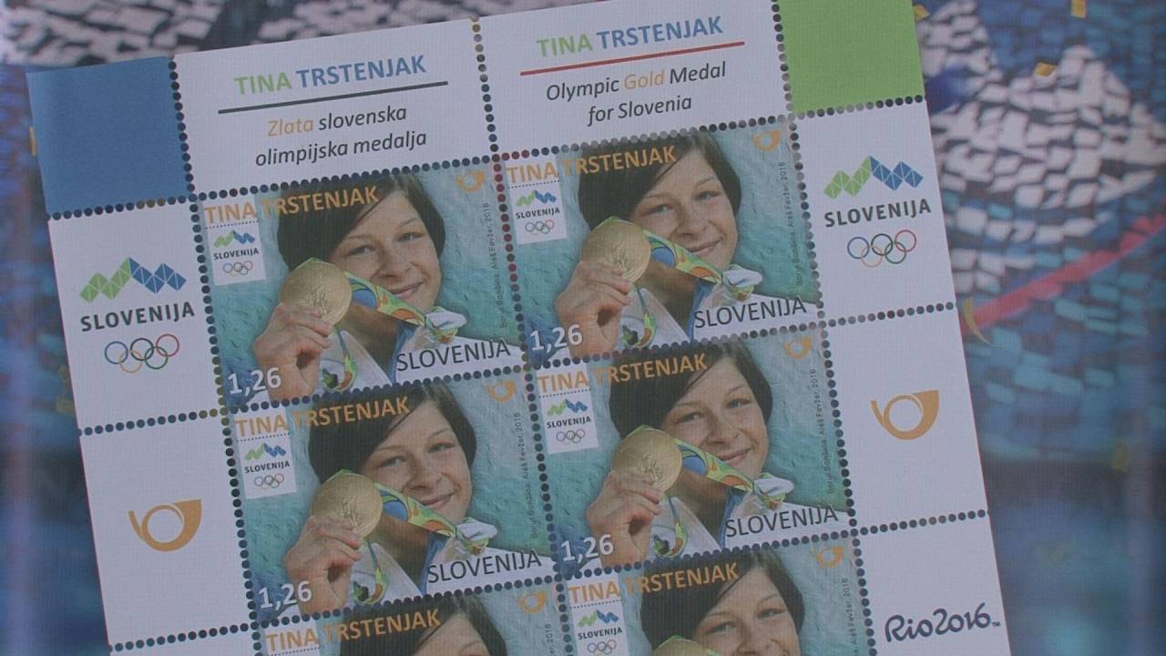 Zlata olimpijka Tina Trstenjak se lahko odslej pohvali s svojo lastno priložnostno znamko. Pošta Slovenije je namreč izdala znamko za 1,26 evra z njeno podobo in zlato olimpijsko kolajno. »Seveda sem zelo ponosna in počaščena, da imam to možnost, da sem dobila svojo priložnostno znamko, to mi je res veliko pomeni, ker tega le ne dobi vsak,« je povedala na predstavitvi znamke v prostorih kluba Sankaku na Lopati pri Celju, kjer Marjan Fabjan trenira slovenske olimpijke.