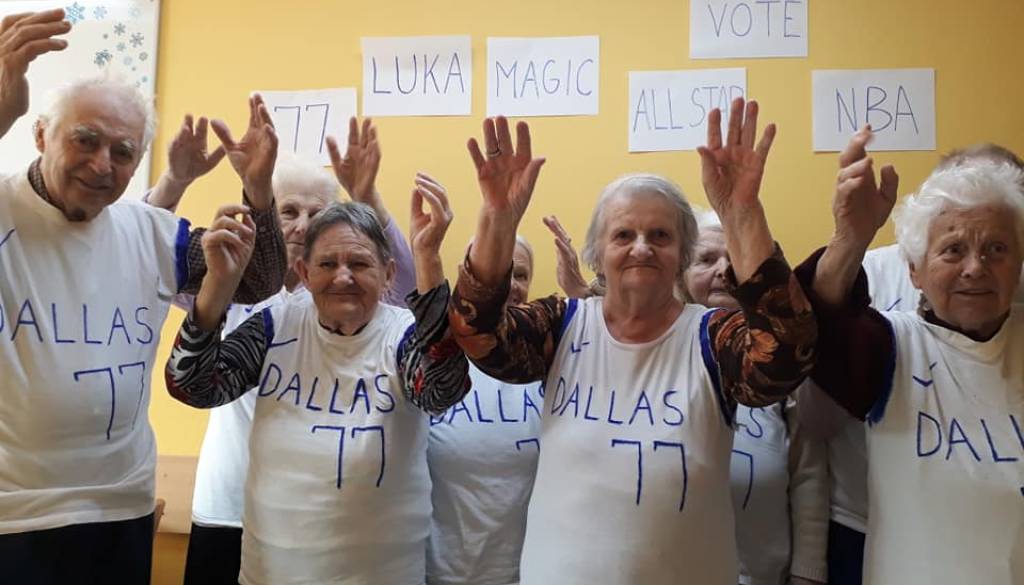 Skupina stanovalcev največjega doma za starejše občane v Mariboru se je preobrazila v ta hip najbolj priljubljenega slovenskega športnika - Luko Dončića. Fotografije skupinske maske so delili na družbenem omrežju Facebook, kjer se je 'Dončićem' pridružil še eden izmed zaposlenih v domu, ki se je danes preobrazil v Jamesa Hardna, košarkarja Houstona, ki so teksaški tekmeci Dallasa.