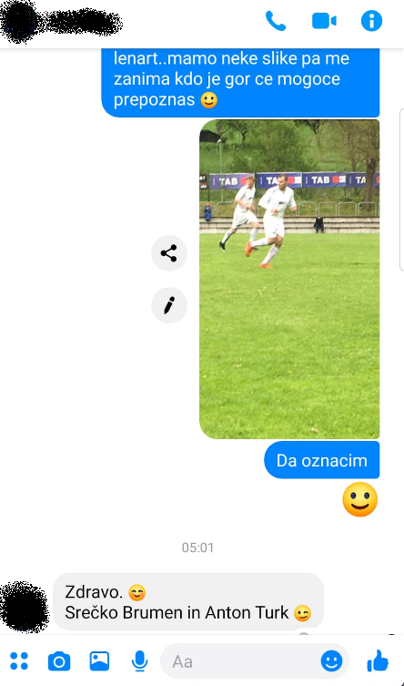 5. Sliko smo poslali tudi bivšemu igralcu Lenarta in ga prosili, naj identificira igralce na sliki. Odgovor vidite v spodnji sliki (ime igralca smo zameglili).«
