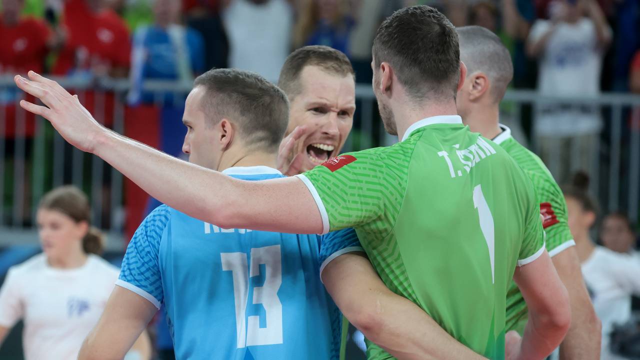 Slovenska odbojkarska reprezentanca si je na domačem prvenstvu zagotovila nastop v osmini finala. V tretjem krogu je v razprodanih Stožicah s 3:0 (16, 22, 17) prepričljivo premagala Nemčijo, s tem pa za Francijo osvojila drugo mesto v skupini.