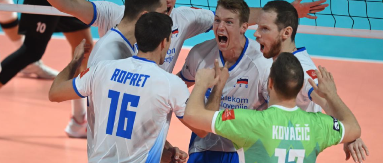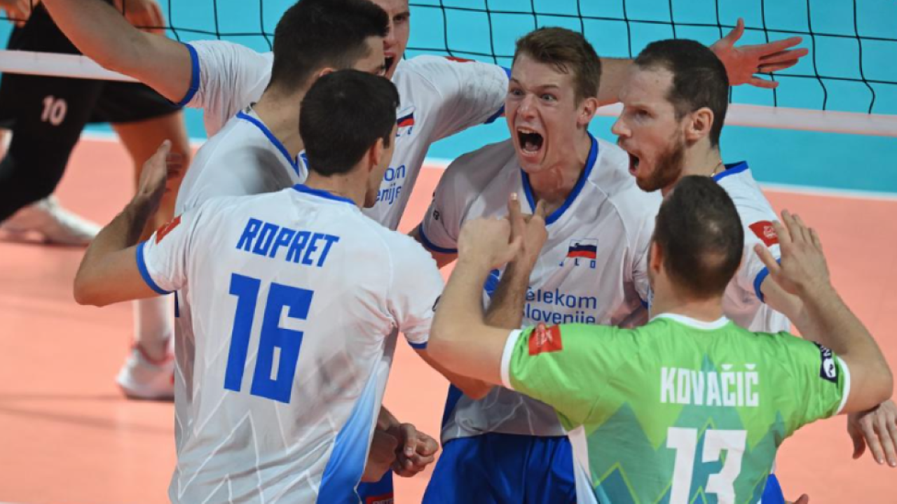 Slovenski odbojkarji po zmagi nad Francijo do brona na Evropskem prvenstvu.