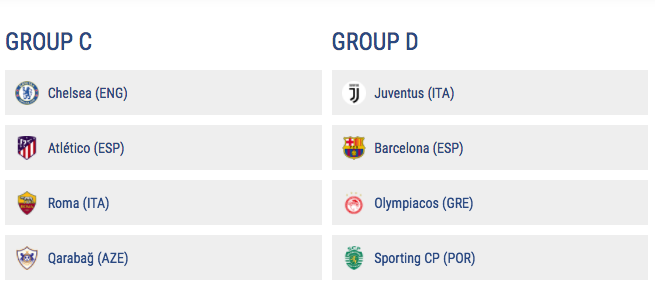 Chelsea, Atletico Madrid, Roma, QarabagSkupina D: