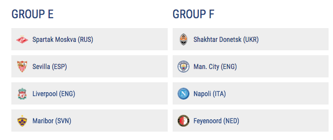 Šahtar Doneck, Manchester City, Napoli, FeyenoordSkupina G: