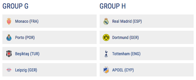Monaco, Porto, Bešiktaš, LeipzigSkupina H: