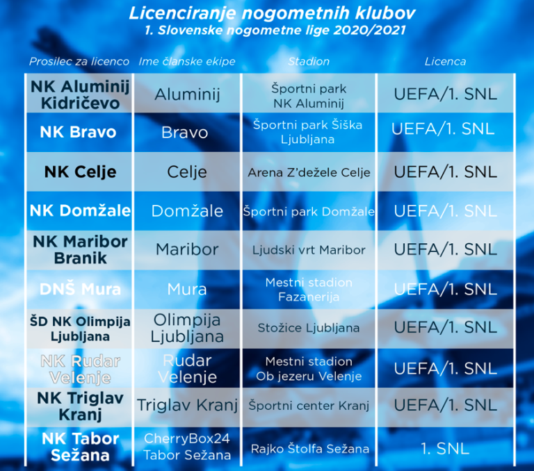 Komisija Nogometne zveze Slovenije za licenciranje nogometnih klubov je danes objavila rezultate licenčnega postopka za klube Prve slovenske nogometne lige za sezono 2020/2021.