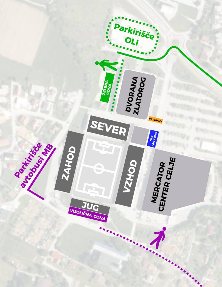V času tekme bo v okolici celjskega stadiona spremenjen tudi prometni režim: Parkirišče za dvorano Zlatorog bo namenjeno navijačem Olimpije, medtem ko bodo privrženci in navijači Maribora parkirali pred dvorano Golovec.