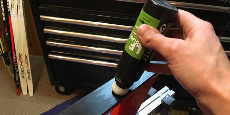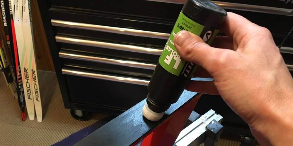 - v smeri naprej in nazaj se pomikajte po celotni površini drsne ploskve in vosek nanesite v debelem sloju,