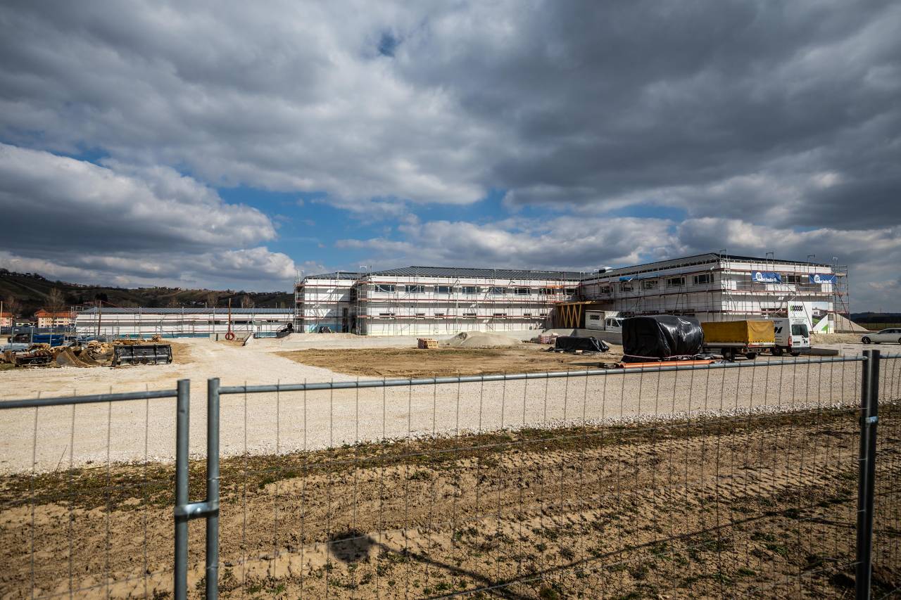 Omenjeni objekt že stoji, po informacijah uredništva je bil postavljen že januarja, za položitev trave pa je, kot je razvidno iz fotografij, očitno pripravljeno eno od igrišč.