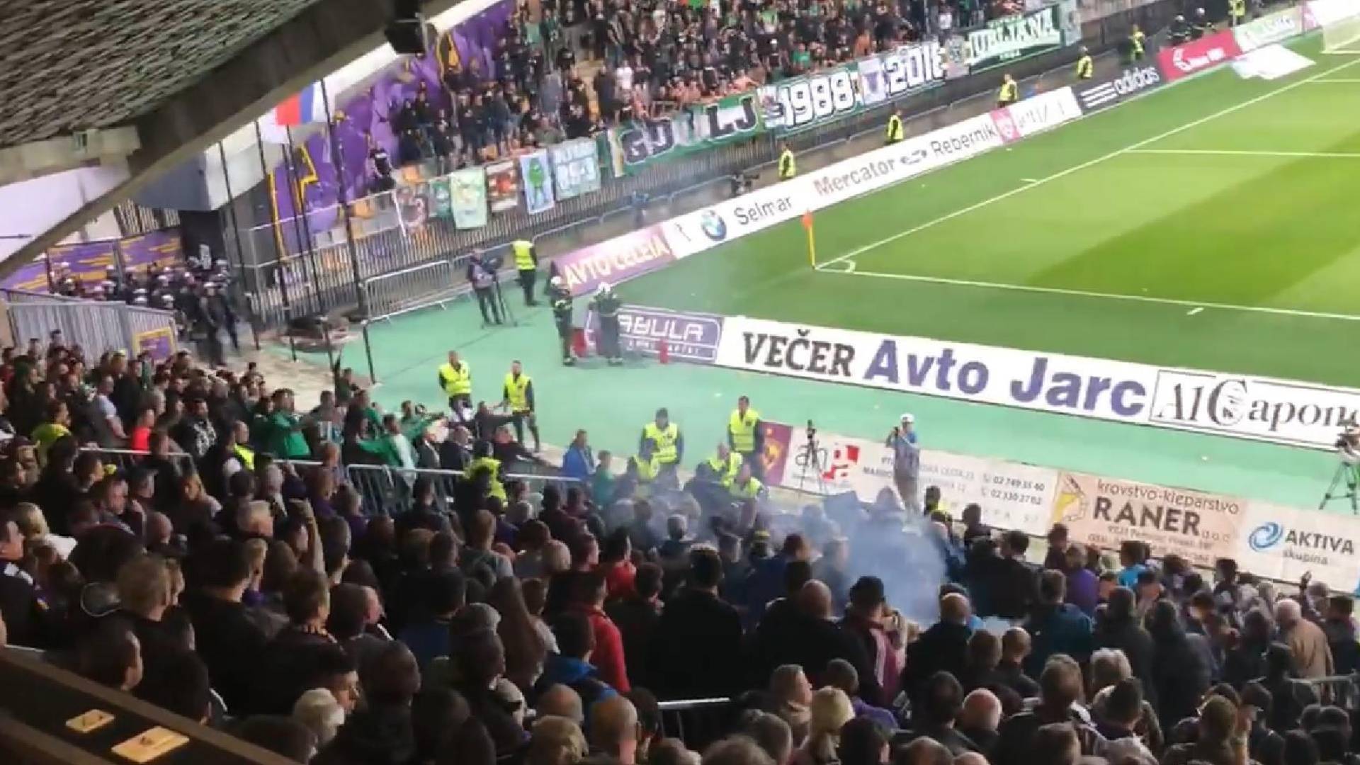 V Ljudskem vrtu poteka drugi letošnji večni derbi. Nabito polne tribune so polne strasti, po dobrih 15. minutah je prišlo do prvega incidenta na tekmi. Pretep preprečila policija.