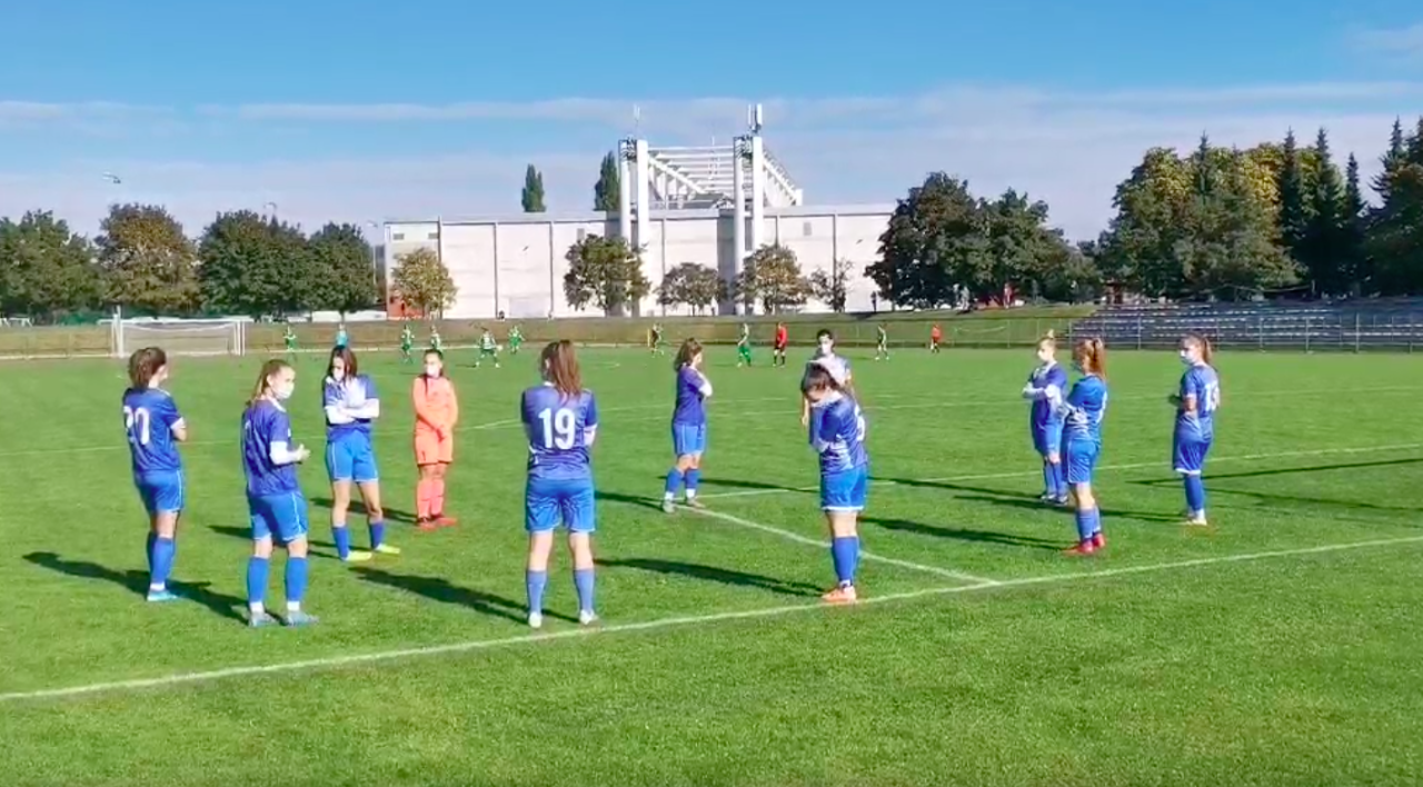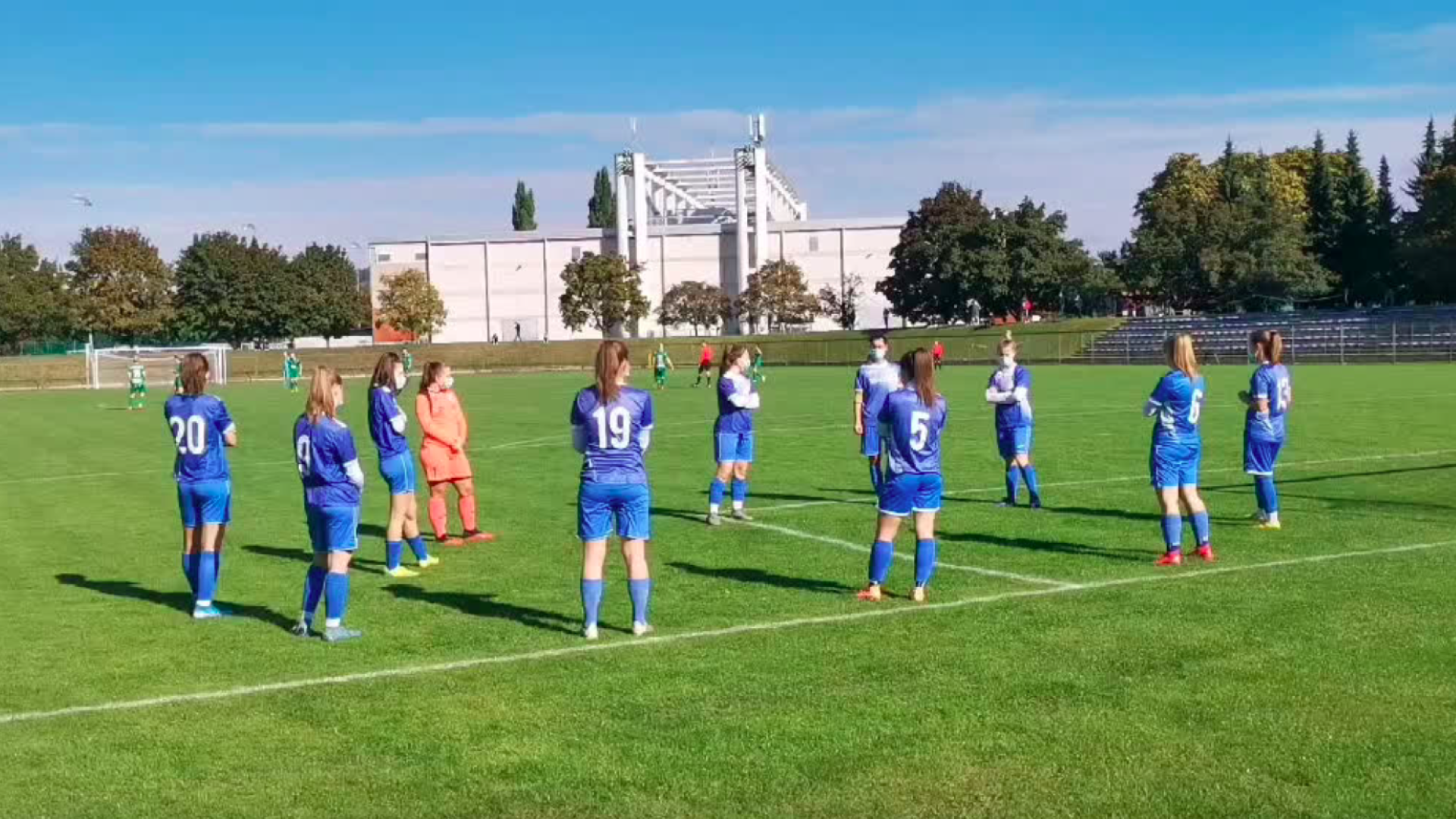 Mariborske nogometašice so v znak protesta z maskami na obrazu obstale na igrišču.