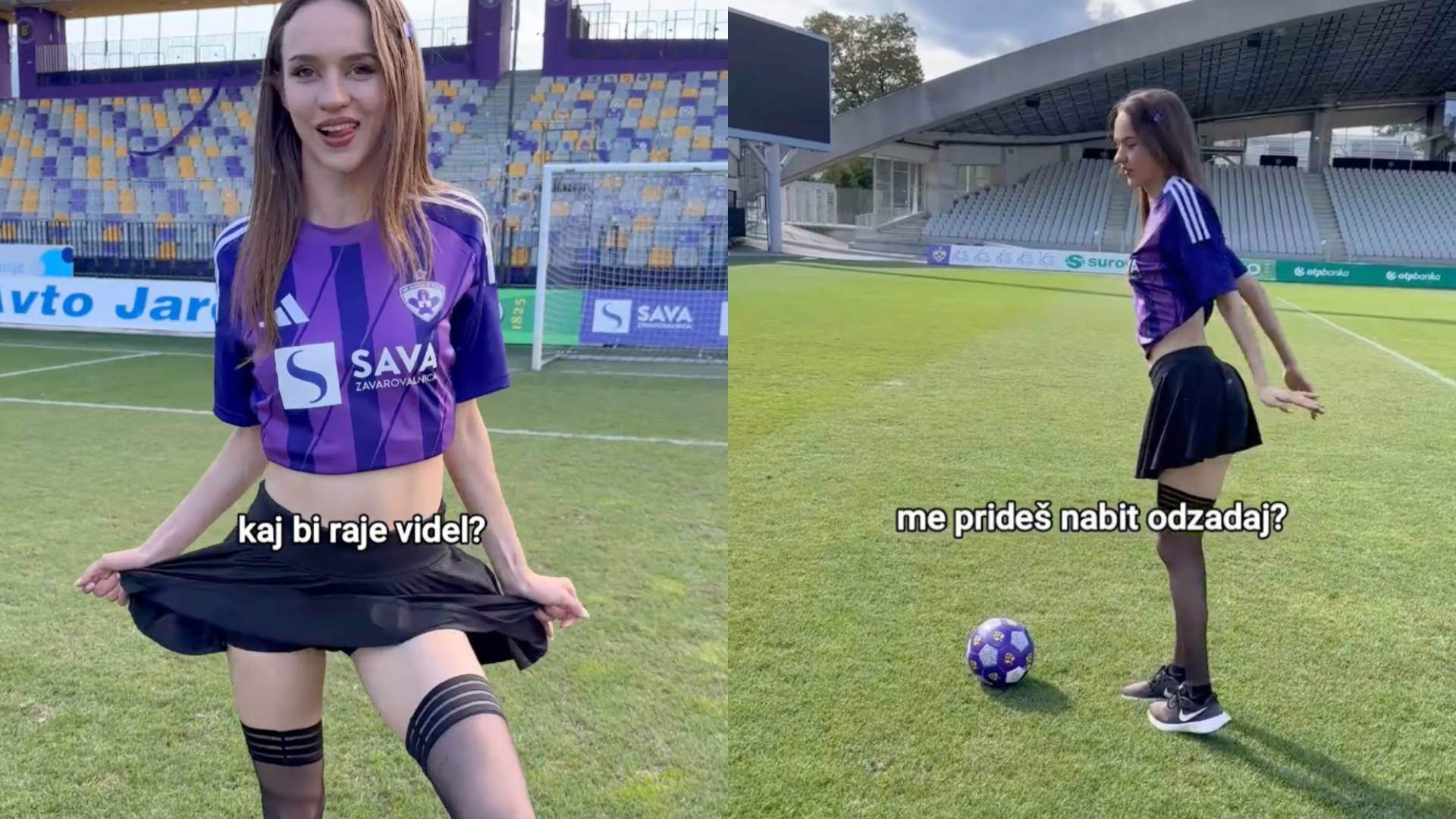 Mladenka Katarina Novak je na zelenici stadiona v Mariboru posnela dva promocijska posnetka za svoj OnlyFans profil, kar je razjezilo navijače.