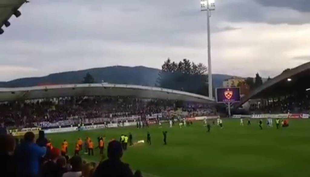 Bakla, ki je poletela na igrišče, je letela v smeri Zlatka Zahovića in Darka Milaniča in ni veliko manjkalo, da bi katerega od njiju tudi zadela. Več pa v priloženem videoposnetku.